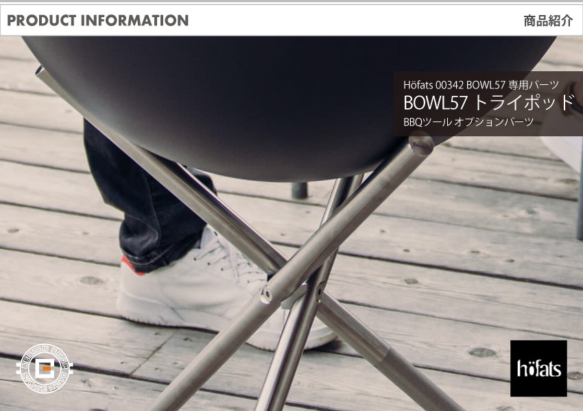 HOEFATS|ドイツ生まれのBBQグッズ 正規取扱店 > HOEFATS(ホーファッツ) 00342 BOWL57 専用トライポッド(ハイタイプ)|ドイツ製 ファイヤーピット BBQ パーツ