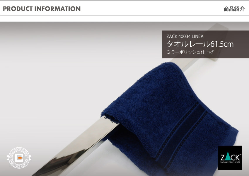 ZACKのタオルレールの中でも最もシンプルなデザインですが、シンプルな中にも高い質感のあるデザイン。
