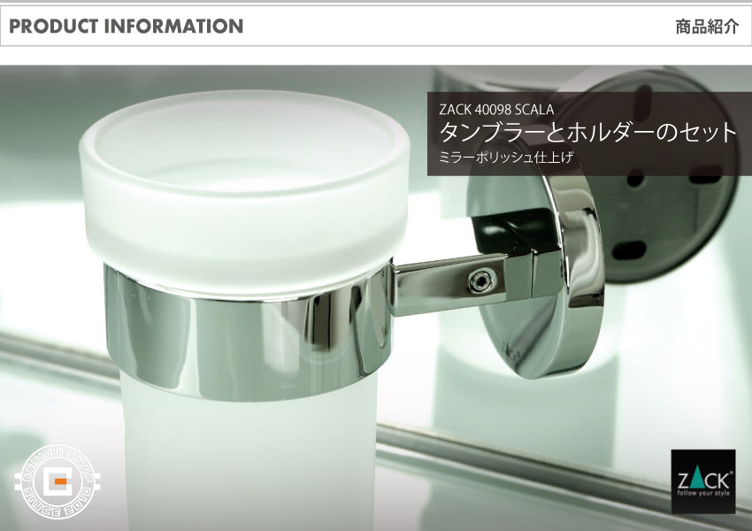 壁付けのタンブラーホルダーとタンブラー(コップ)のセットになっており、白いすりガラスもスタイリッシュで、機能的なアイテムです。