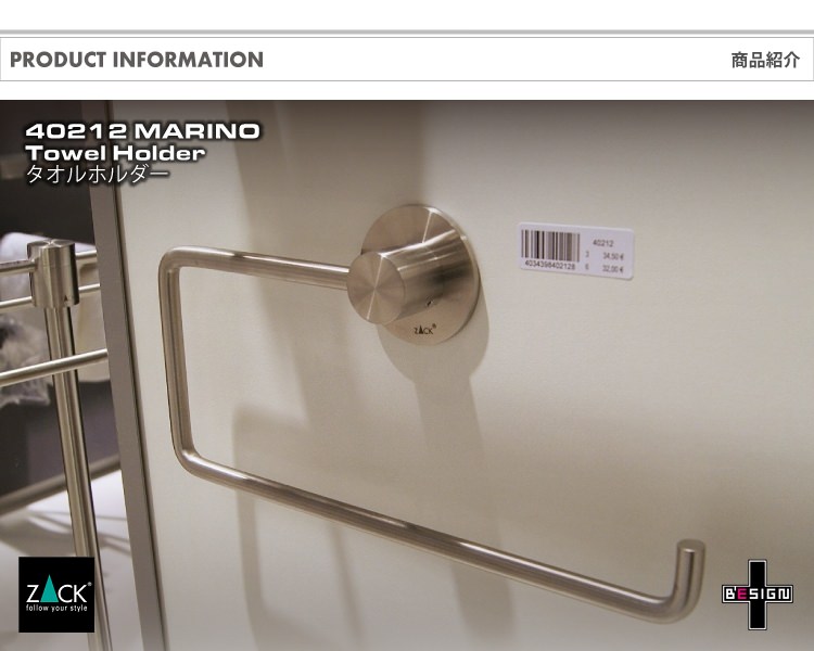 トップ > ZACK MUSEUM > [廃番] ZACK 40212 MARINO ドイツZACK社製モダンデザインのタオルホルダー