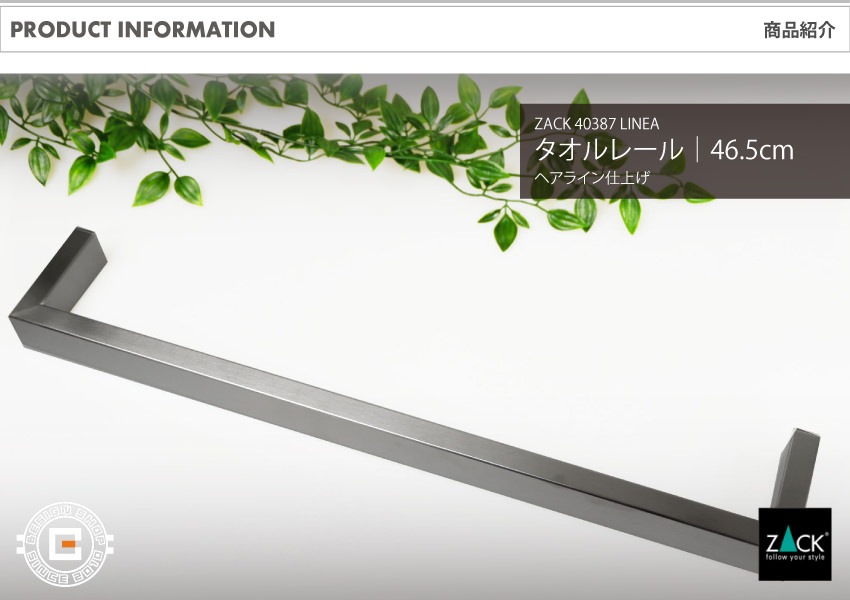 ZACKのタオルレールの中でも最もシンプルなデザインですが、シンプルな中にも高い質感のあるデザイン。
