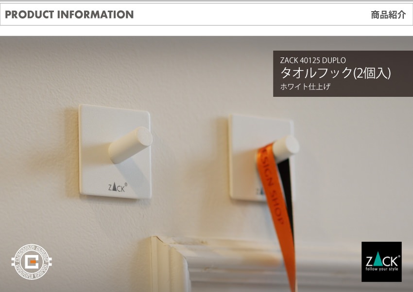 EVENT > SP50 > ZACK 40125 DUPLO ドイツZACK社製モダンデザインのタオルフック ホワイト仕上げ(スクエア/2個入)[在庫有り]