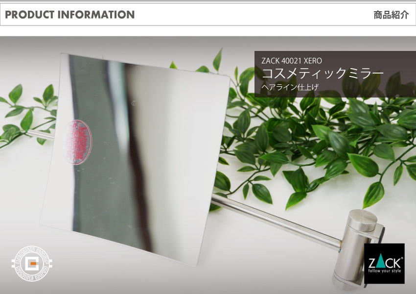 ZACK > 仕上げ方法 > ヘアライン仕上げ > [サンプル品] ZACK 40021 XERO ドイツZACK社製モダンデザインのウォールミラー(5倍拡大鏡) 壁付けタイプ DIY [在庫有り]