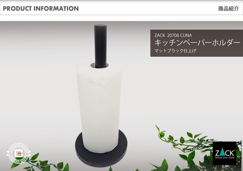 ZACK > ZACK 20706 CUNA ドイツZACK社製モダンデザインのキッチンロールホルダー マットブラック [お取寄せ]
