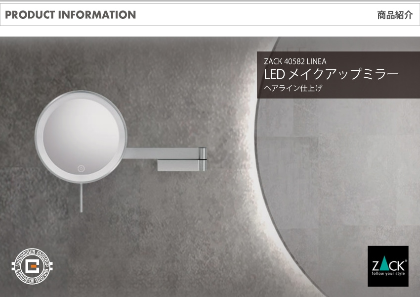 ZACK > 年度別 > 2024 SPRING > ZACK 40582 LINEA ドイツZACK社製モダンデザインのLED コスメティックミラー(X5倍) HL [お取寄せ]