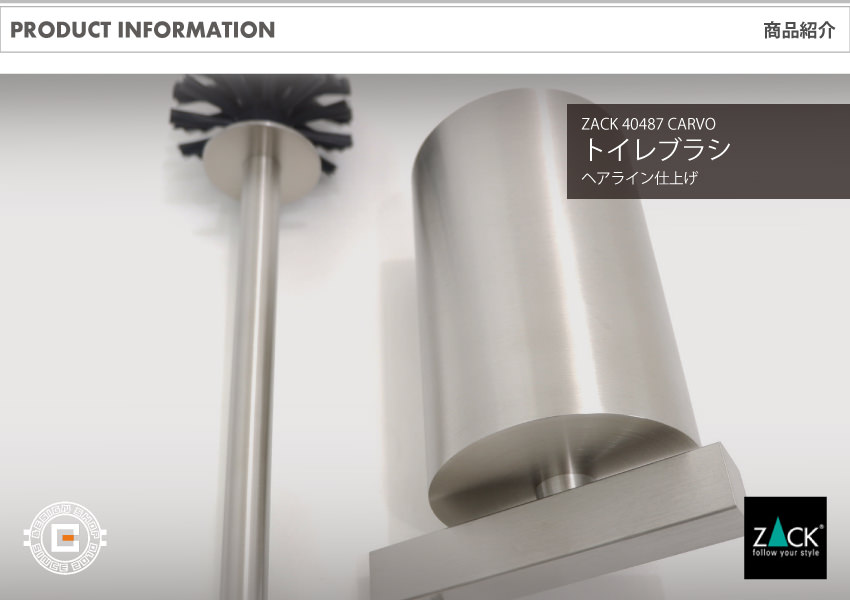 ZACK > 仕上げ方法 > ヘアライン仕上げ > [サンプル品] ZACK 40487 CARVO ドイツZACK社製モダンデザインのトイレブラシ 壁付けタイプ DIY HL [在庫有り]