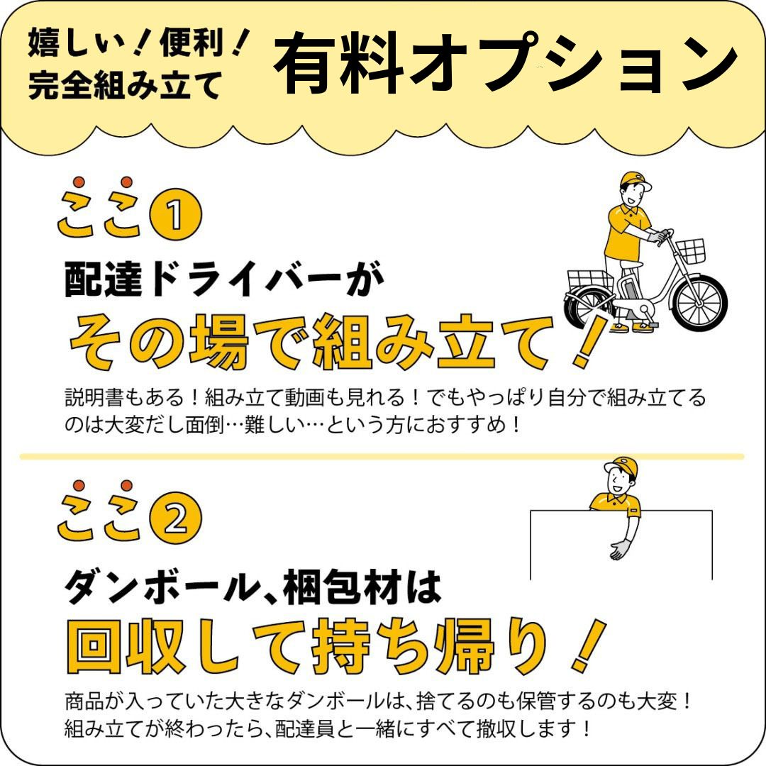 ■最終的な全てのパーツの取付とダンボールの持ち帰りまで含めた【組立配送サービス(7150円)】もございます。
