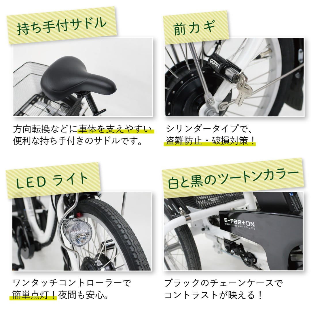アウトドア > EV > E-PARTON > [電動アシスト自転車] E-PARTON イーパートン ロータイプ電動アシスト三輪自転車 BEPN18-WH ホワイト 送料無料 (北海道・沖縄・離島別送料)