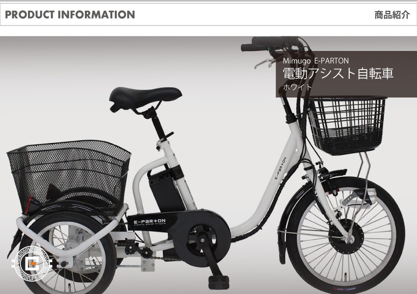 Mimugo(ミムゴ)自転車 正規取扱店 > 自転車 > [電動アシスト自転車] E-PARTON イーパートン ロータイプ電動アシスト三輪自転車 BEPN18-WH ホワイト 送料無料 (北海道・沖縄・離島別送料)