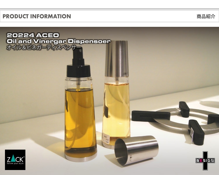 トップ > ZACK MUSEUM > [廃番] ZACK 20224 ACEO ドイツZACK社製モダンデザインのオイル/ビネガースプレーディペンサー