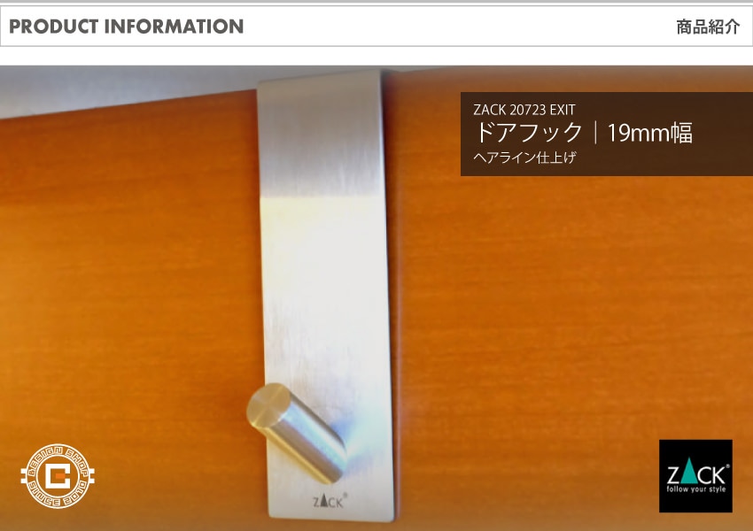 インテリア > OFFICE > 雑貨 > ハンガー > ステンレス > ZACK 20723 EXIT ドイツZACK社製モダンデザインのドアフック HL [在庫有り]