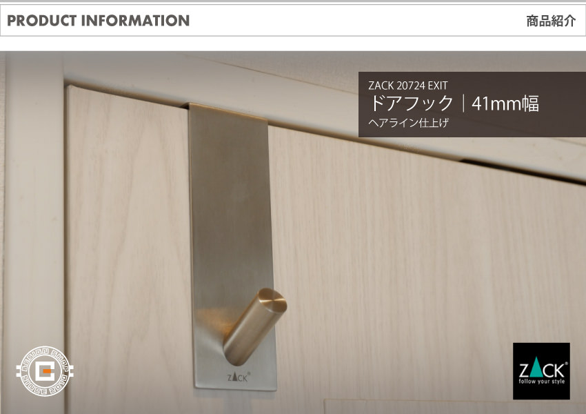 ZACK > ZACK 20724 EXIT ドイツZACK社製モダンデザインのドアフック 41mm幅 HL [在庫有り]