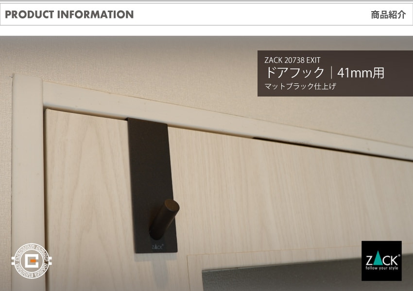 ZACKのドア用フックは種類が豊富ですので、お好みのサイズとテクスチャーでぜひお選びください。