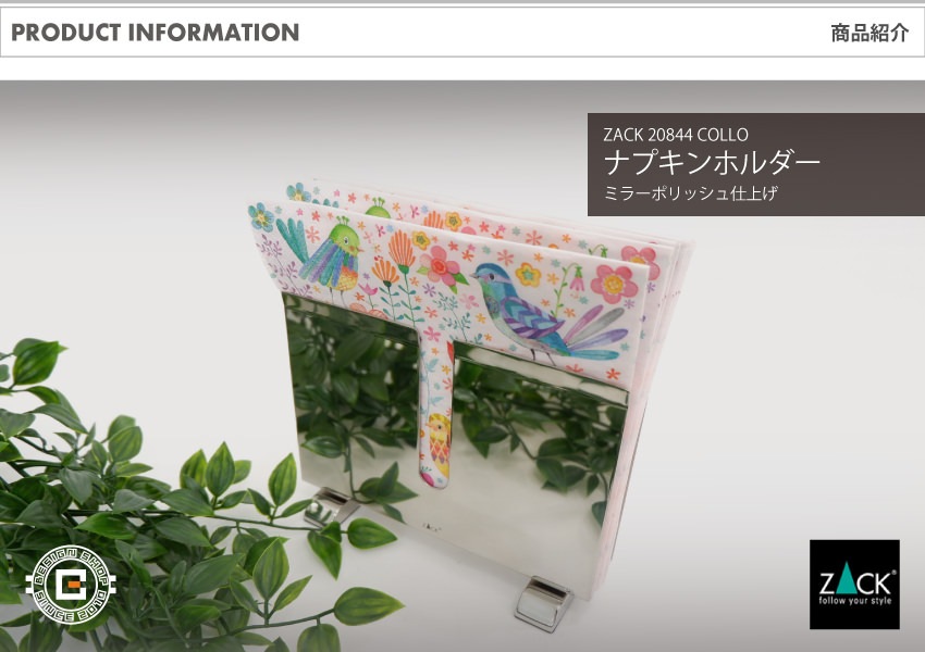 トップ > ZACK MUSEUM > [廃番] ZACK 20844 COLLO ドイツZACK社製モダンデザインのナプキンホルダー(紙ナフキン)