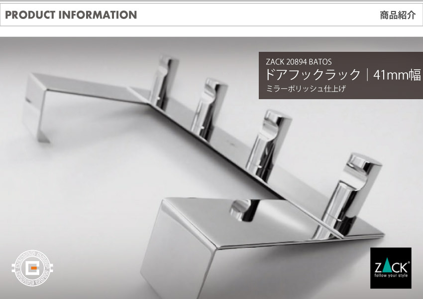 トップ > ZACK MUSEUM > [廃番] ZACK 20894 BATOS ドイツZACK社製モダンデザインのドアフックラック