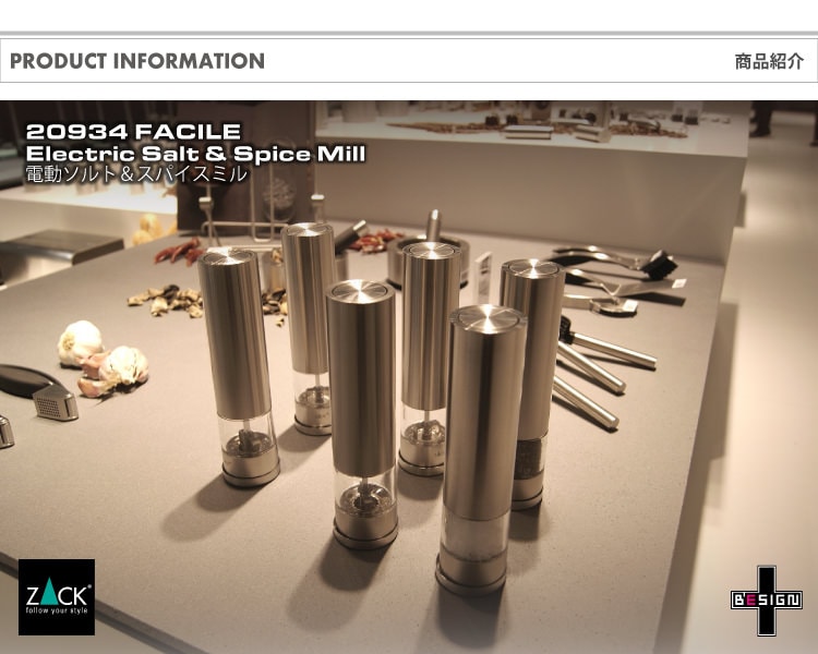 トップ > ZACK MUSEUM > [廃番] ZACK 20934 FACILE ドイツZACK社製モダンデザインの電動ソルト&スパイスミル