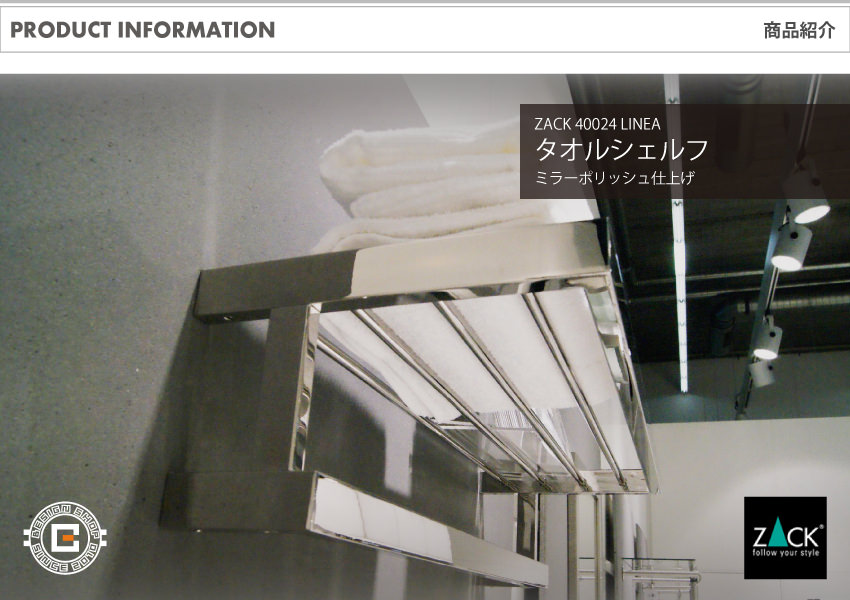 トップ > ZACK MUSEUM > [廃番] ZACK 40024 LINEA ドイツZACK社製モダンデザインのタオルシェルフ 壁付けタイプ DIY MP