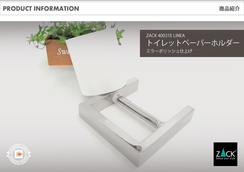 トップ > ZACK MUSEUM > [廃番] ZACK 40031E LINEA ドイツZACK社製モダンデザインのトイレットロールホルダー 壁付けタイプ DIY