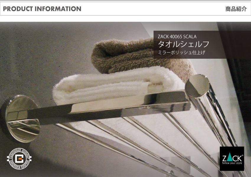 トップ > ZACK MUSEUM > [廃番]ZACK 40065 SCALA ドイツZACK社製モダンデザインのタオルシェルフ 66cm 壁付けタイプ DIY MP