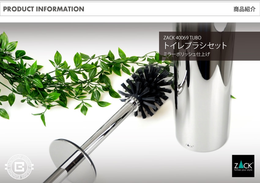 ZACK > 仕上げ方法 > 鏡面仕上げ > ZACK 40069 TUBO ドイツZACK社製モダンデザインのトイレブラシセット MP [在庫有り]