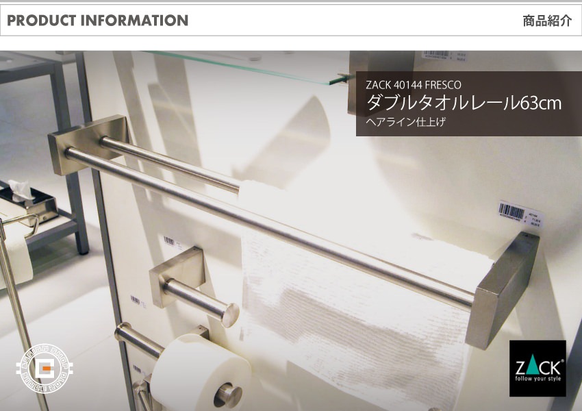 トップ > ZACK MUSEUM > [廃番] ZACK 40144 FRESCO ドイツZACK社製モダンデザインのダブルタオルレール 壁付けタイプ DIY