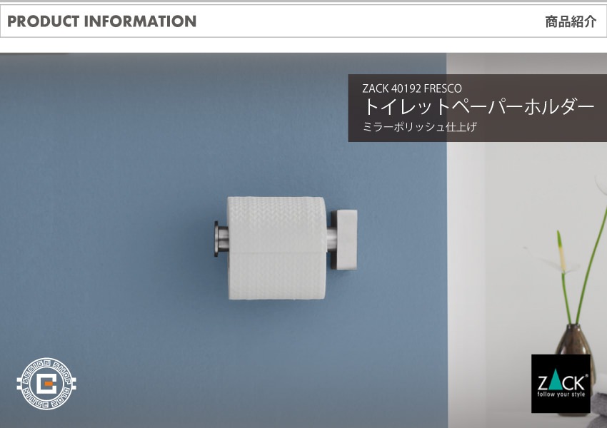 トップ > ZACK MUSEUM > [廃番] ZACK 40192 FRESCO ドイツZACK社製モダンデザインのトイレットロールホルダー 壁付けタイプ DIY