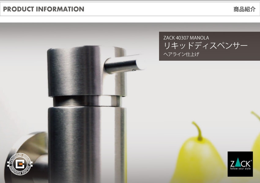 トップ > ZACK MUSEUM > [廃番] ZACK 40307 MANOLA ドイツZACK社製モダンデザインのリキッドディスペンサー 壁付けタイプ DIY