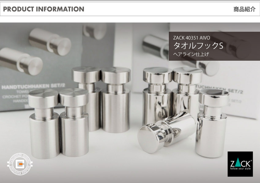 トップ > ZACK MUSEUM > [廃番] ZACK 40351 AIVO ドイツZACK社製モダンデザインのタオルフックS 2個セット 壁付けタイプ DIY HL