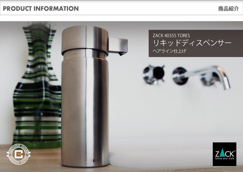 トップ > ZACK MUSEUM > [廃番] ZACK 40355 TORES ドイツZACK社製モダンデザインのリキッドディスペンサー HL