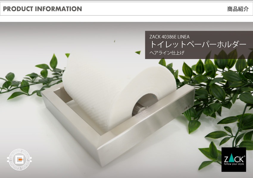 トップ > ZACK MUSEUM > [廃番] ZACK 40386E LINEA ドイツZACK社製モダンデザインのトイレットロールホルダー 壁付けタイプ DIY