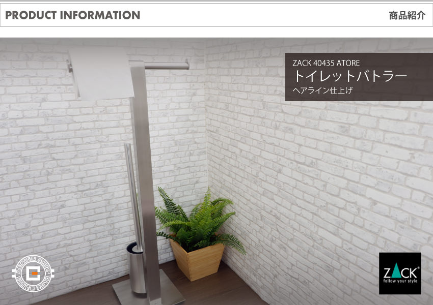 ペーパーホルダーとブラシのホルダーが一体型になっている便利さを、ZACKでは「執事」にちなんで「バトラー」と名づけています。