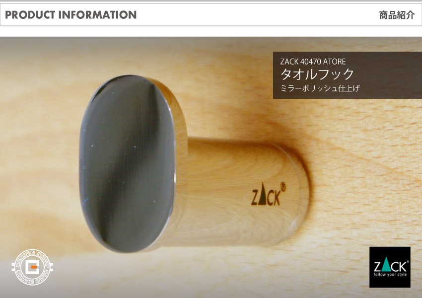 トップ > ZACK MUSEUM > [廃番] ZACK 40470 ATORE ドイツZACK社製モダンデザインのタオルフック 壁付けタイプ DIY MP