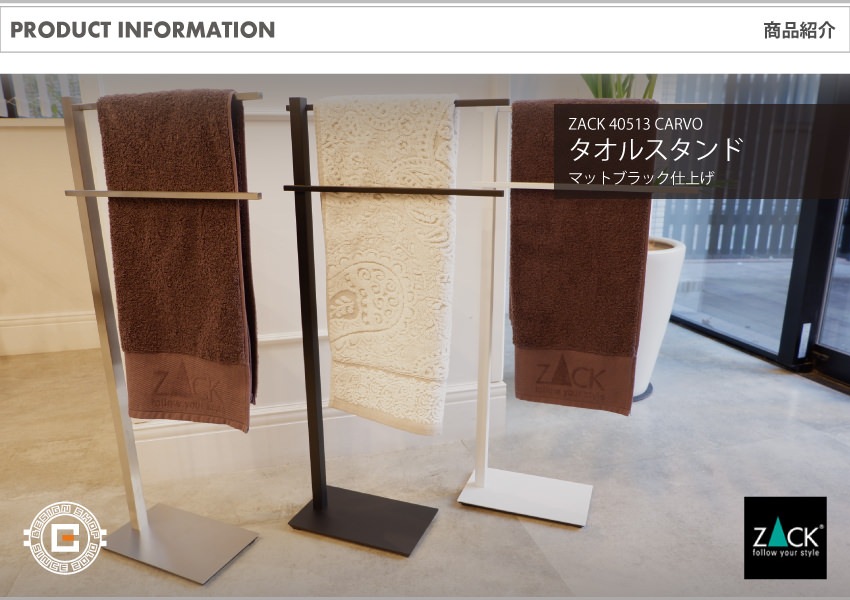 ZACK > 仕上げ方法 > ブラック塗装 > ZACK 40513 CARVO ドイツZACK社製モダンデザインのタオルスタンド マットブラック [お取寄せ]