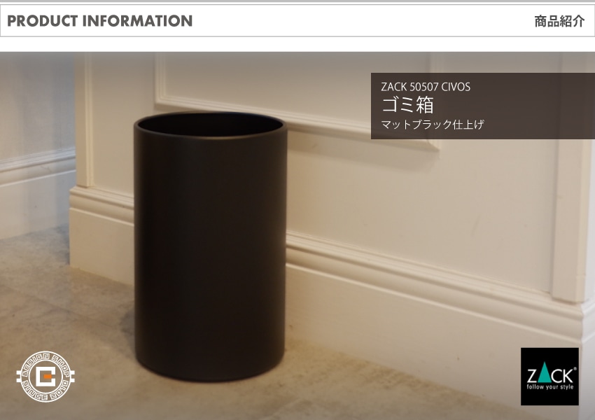 インテリア > OFFICE > 家具 > ゴミ箱 > ステンレス > ZACK 50507 CIVOS ドイツZACK社製モダンデザインのゴミ箱 マットブラック [在庫有り]