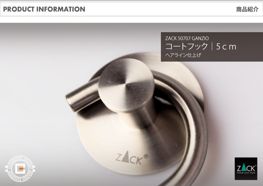 トップ > ZACK MUSEUM > [廃番] ZACK 50707 GANZIO ドイツZACK社製モダンデザインのフック