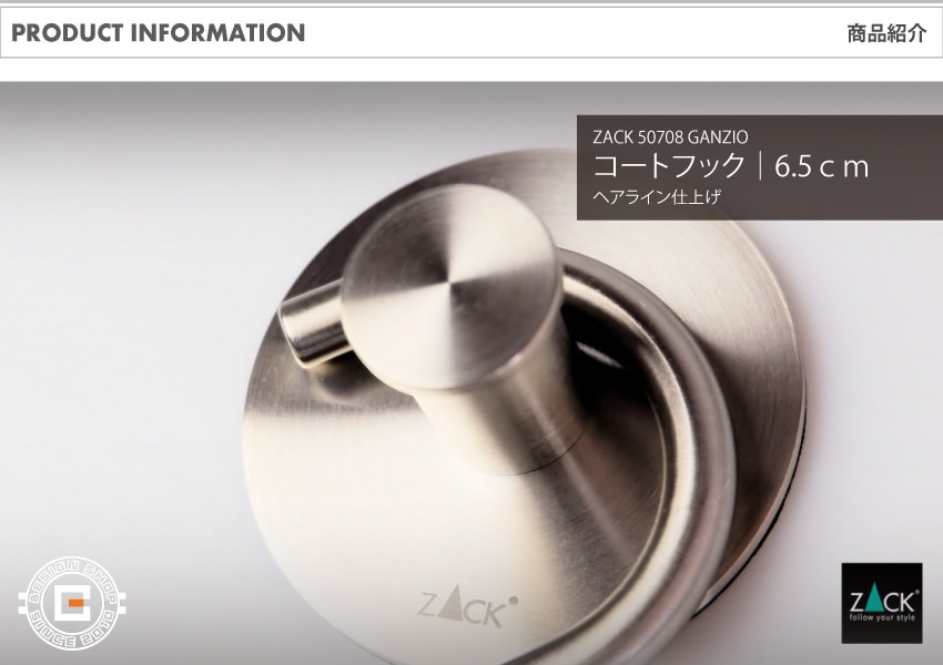 トップ > ZACK MUSEUM > [廃番] ZACK 50708 GANZIO ドイツZACK社製モダンデザインのフック D6.5cm 壁付けタイプ DIY